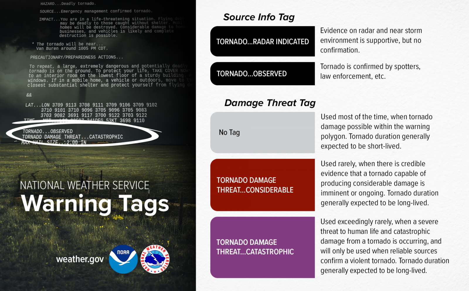 NWS Impact-Based Warning system display showing the Catastrophic Tornado Warning language developed post-Joplin